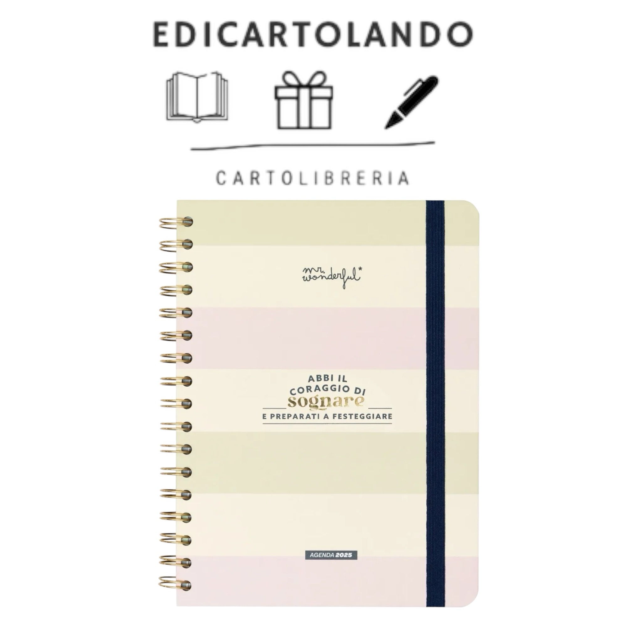 Agenda stile Office di Mr. Wonderful, un tipo di disegno un po’ più sobrio e misurato rispetto al nostro stile più classico, per cui piacerà tantissimo a un pubblico più adulto. Con organizzazione settimanale, va da gennaio a dicembre 2025.