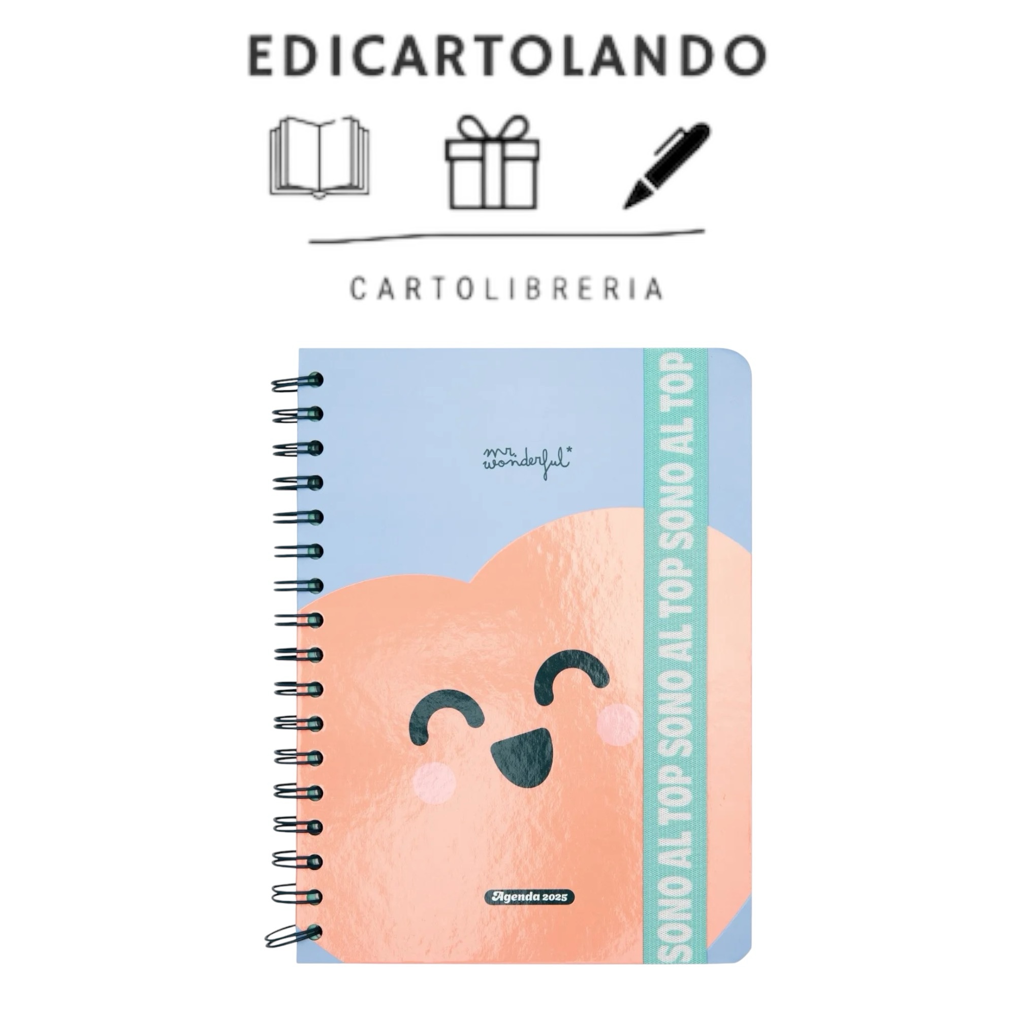 Agenda in stile Wonder di Mr. Wonderful, a organizzazione settimanale, va da gennaio a dicembre 2025.