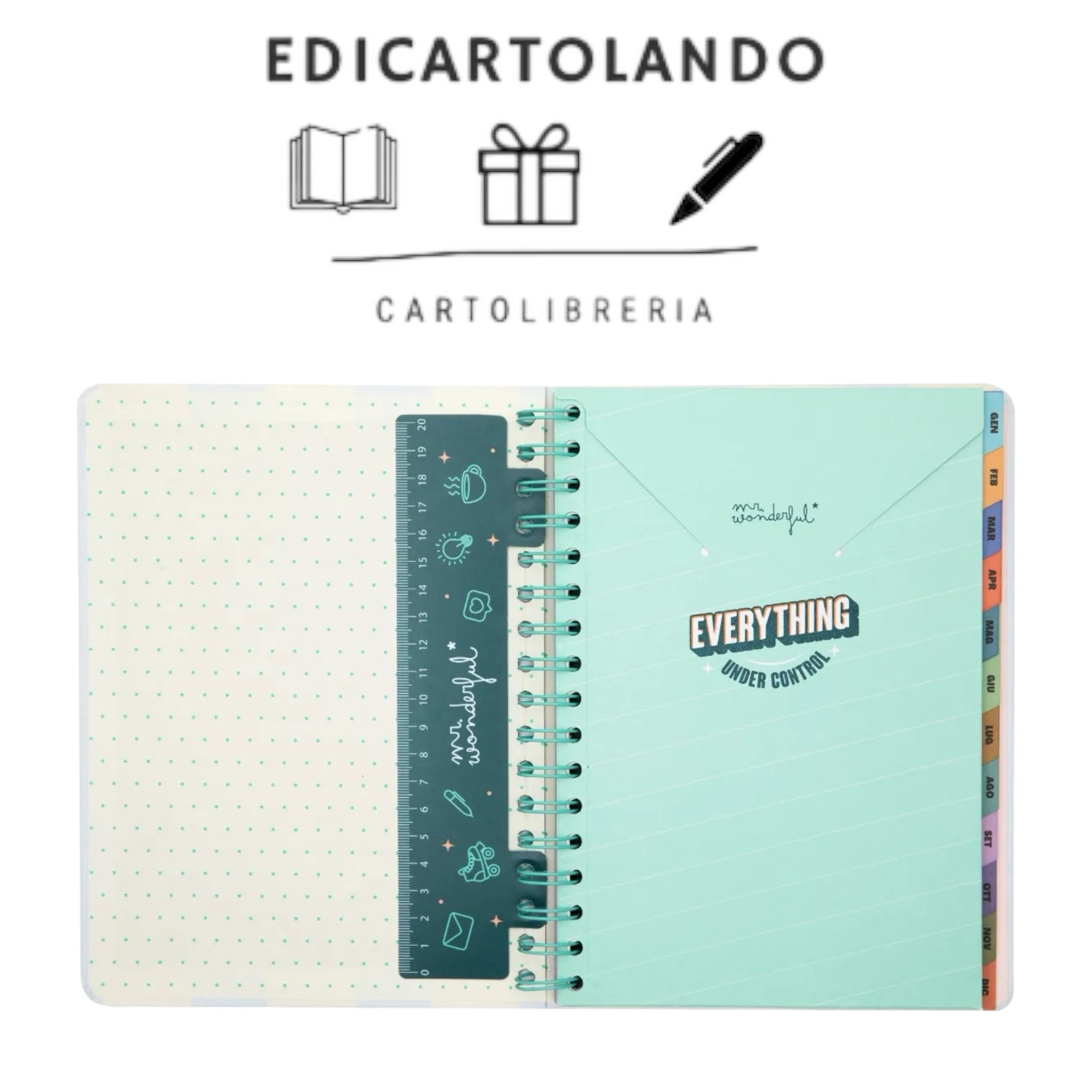 Agenda in stile Wonder di Mr. Wonderful, a organizzazione settimanale, va da gennaio a dicembre 2025.