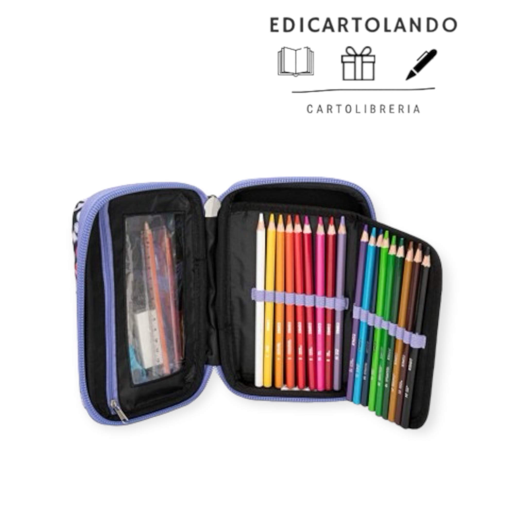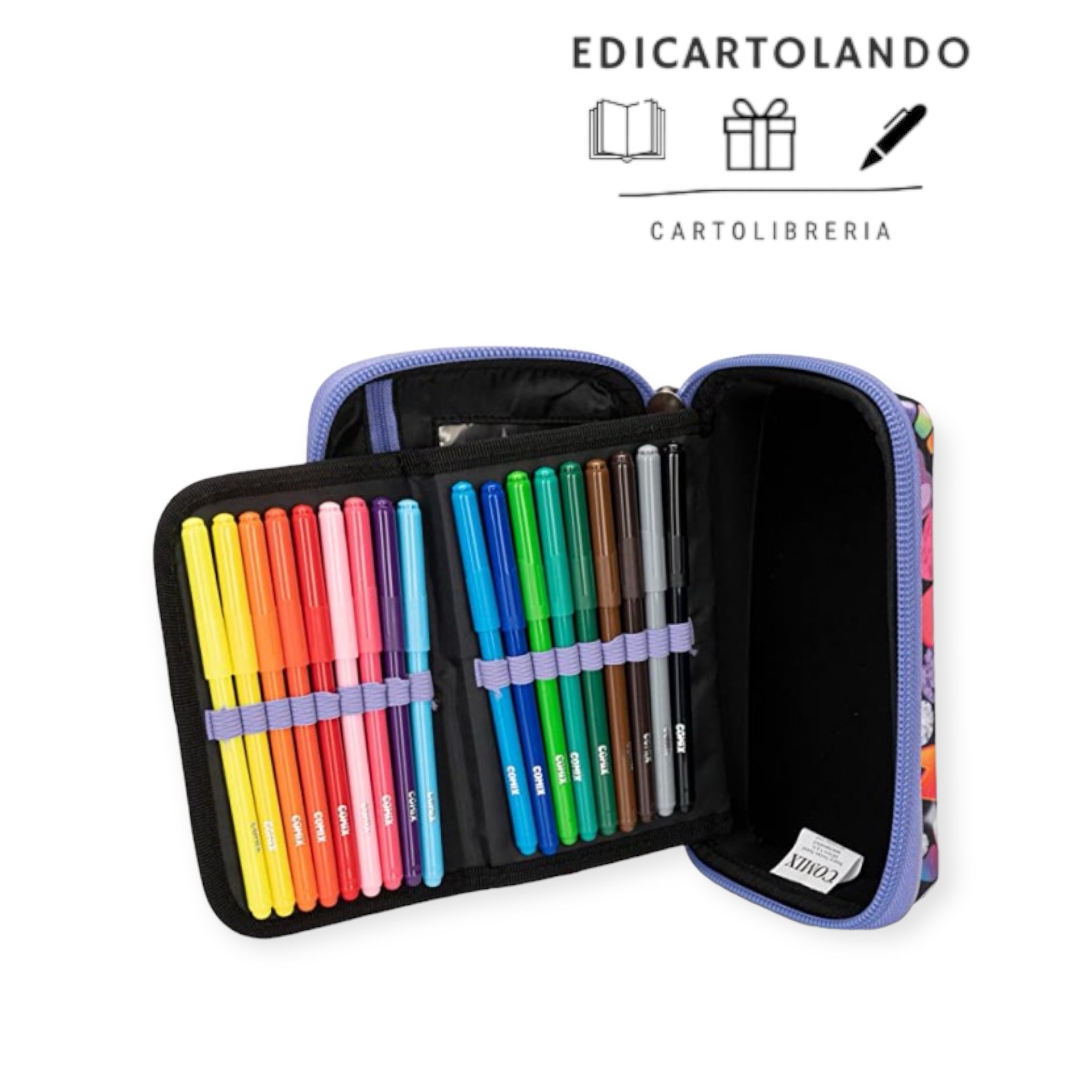 Astuccio multicolor rigido con chiusura a zip contiene: