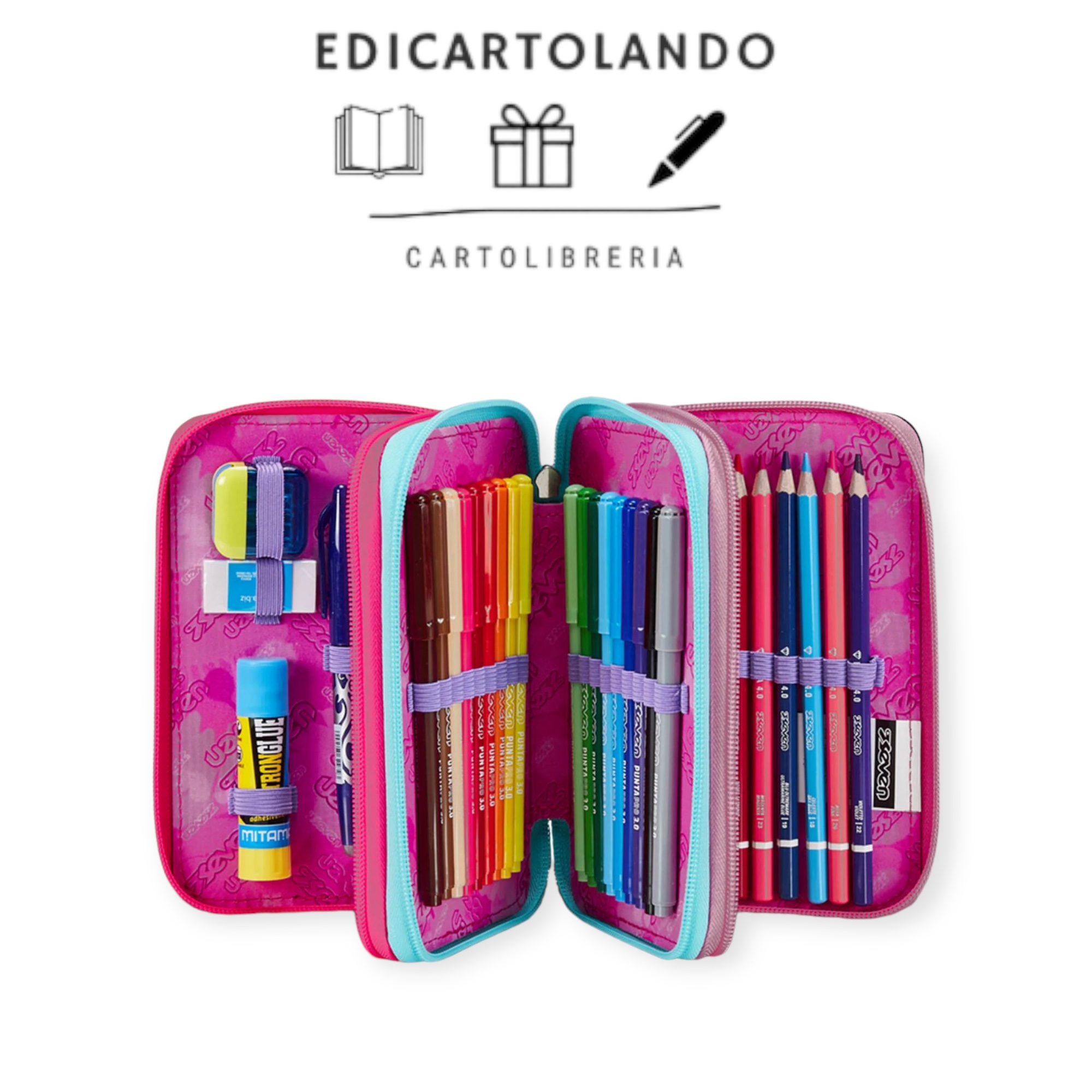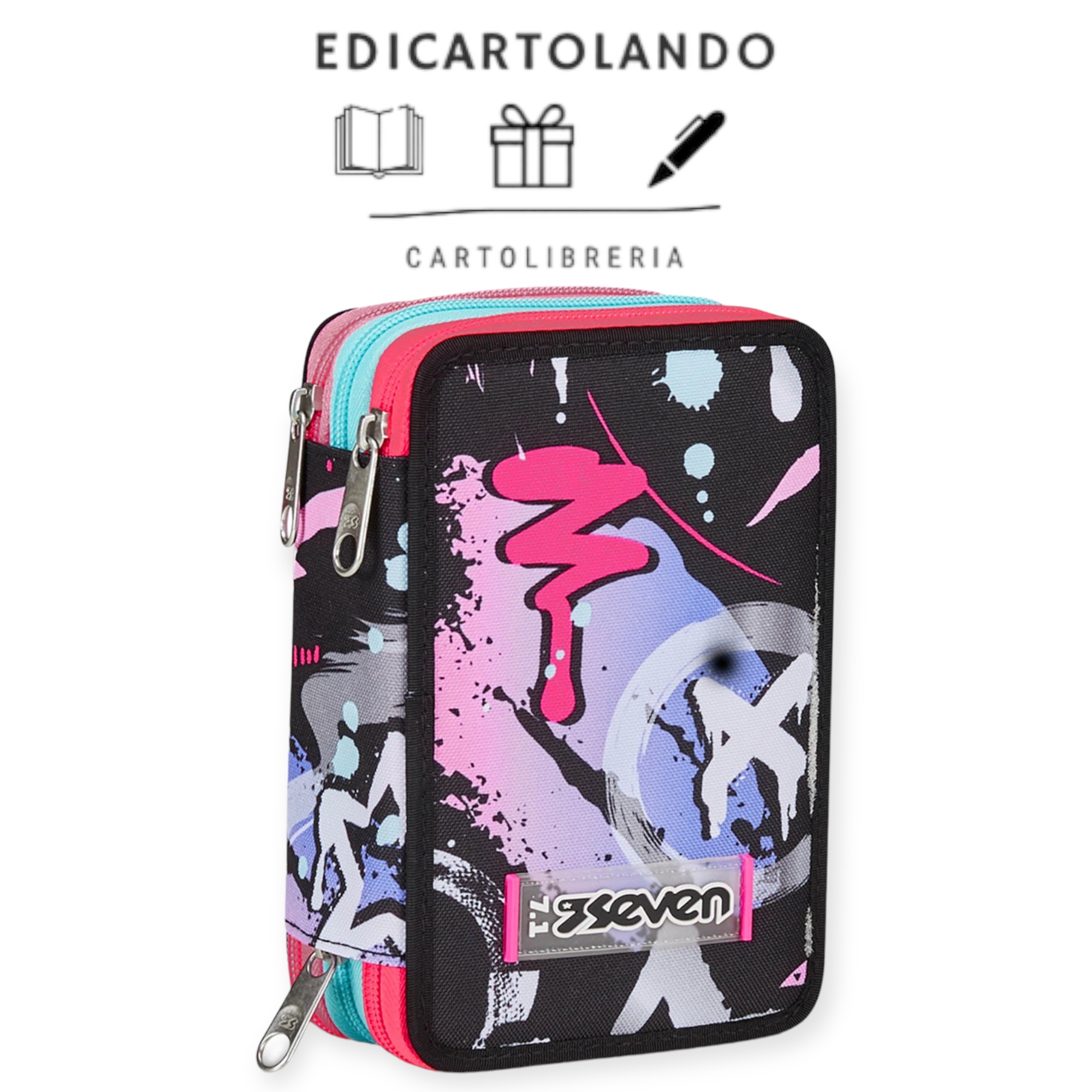 Astuccio Seven 3 zip ha tre scomparti in cui troverai tutto il materiale necessario per la tua giornata di scuola. A te non resta altro che abbinarlo a uno zaino o trolley Seven.