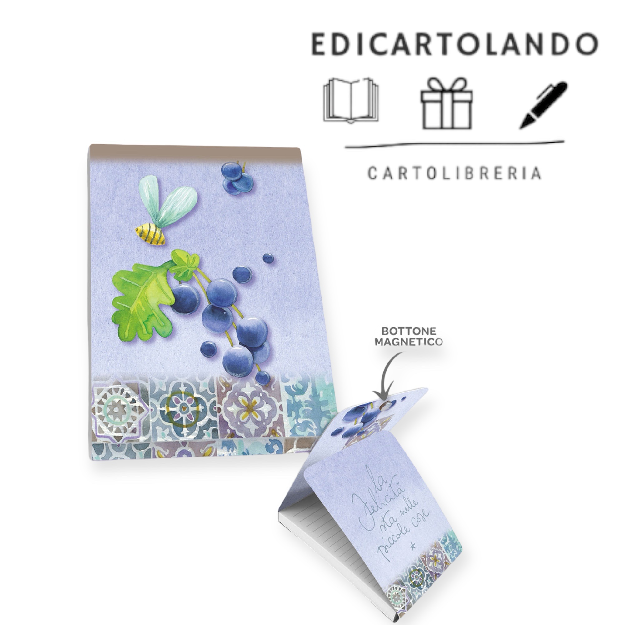 Utile mini block notes di a righe protetto da copertina a fascetta che si chiude con un piccolo magnete. La copertina è morbida al tatto ed è impreziosita da dettagli lucidi ad alto spessore.