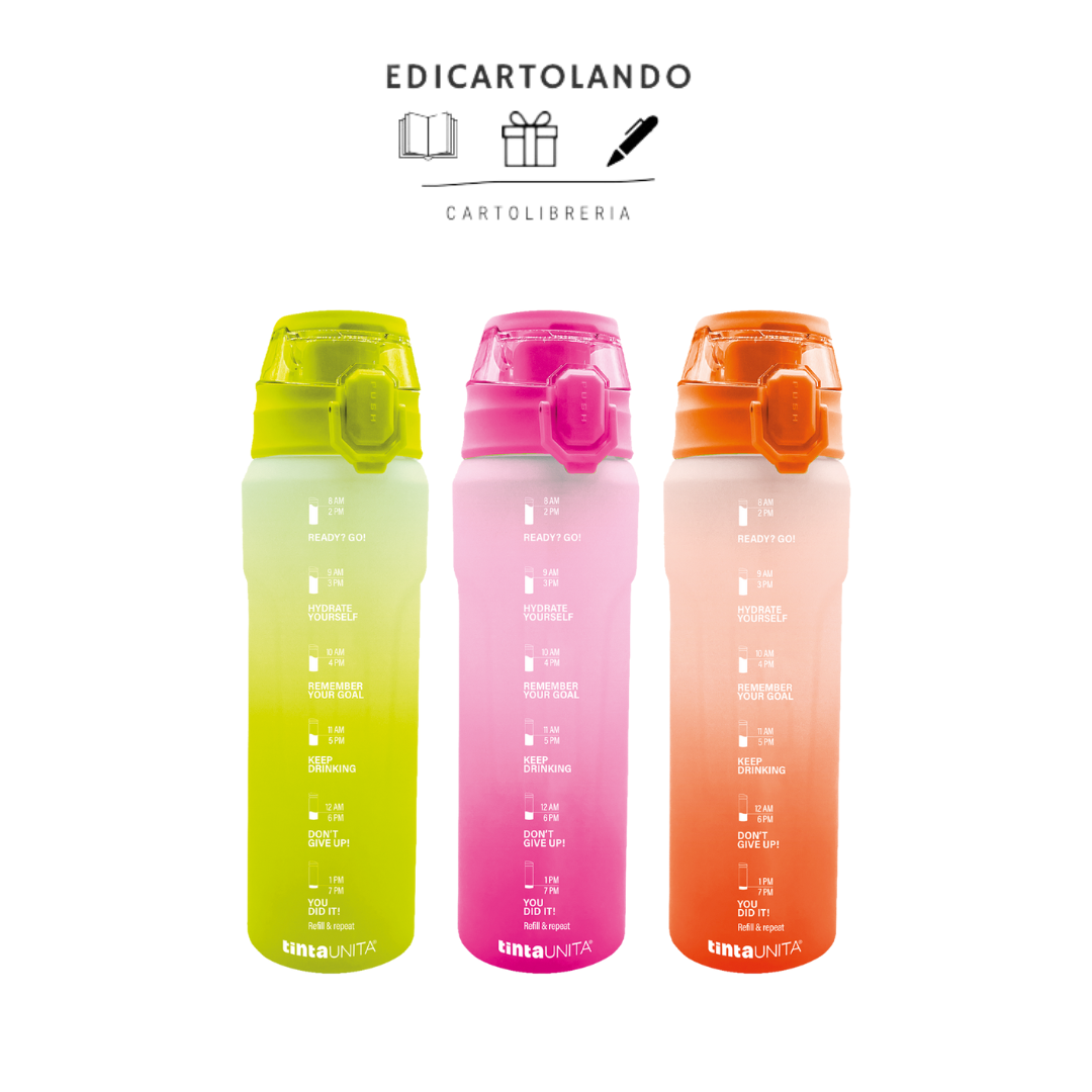 Disponibile in tre colorazioni fluì, questa borraccia ti aiuta a bere di più e a mantenere il giusto livello di idratazione grazie alle sue frasi motivazionali,