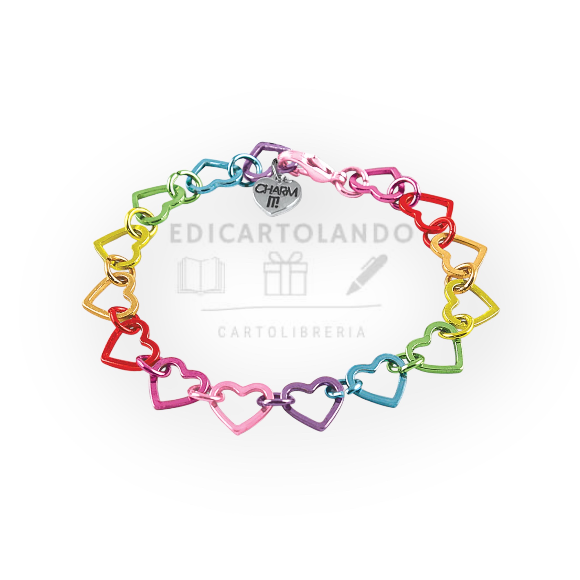 Braccialetto a catena con cuori color arcobaleno