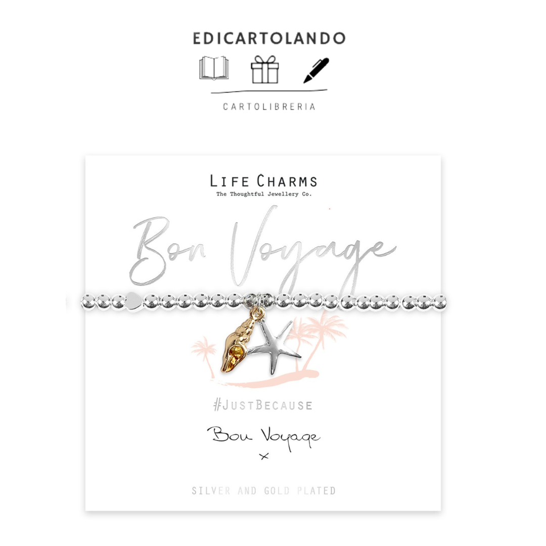 Il braccialetto viene presentato in una lussuosa confezione regalo, con un biglietto reversibile Just Why "Bon Voyage".