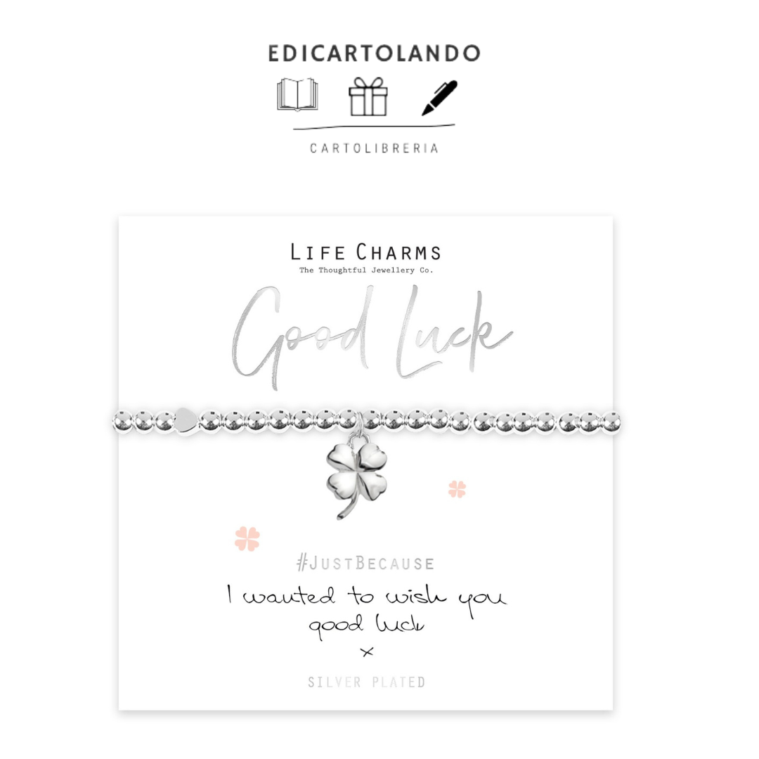 Questo bellissimo braccialetto con ciondolo presenta un quadrifoglio in argento su un braccialetto elasticizzato con perline da 5 mm.