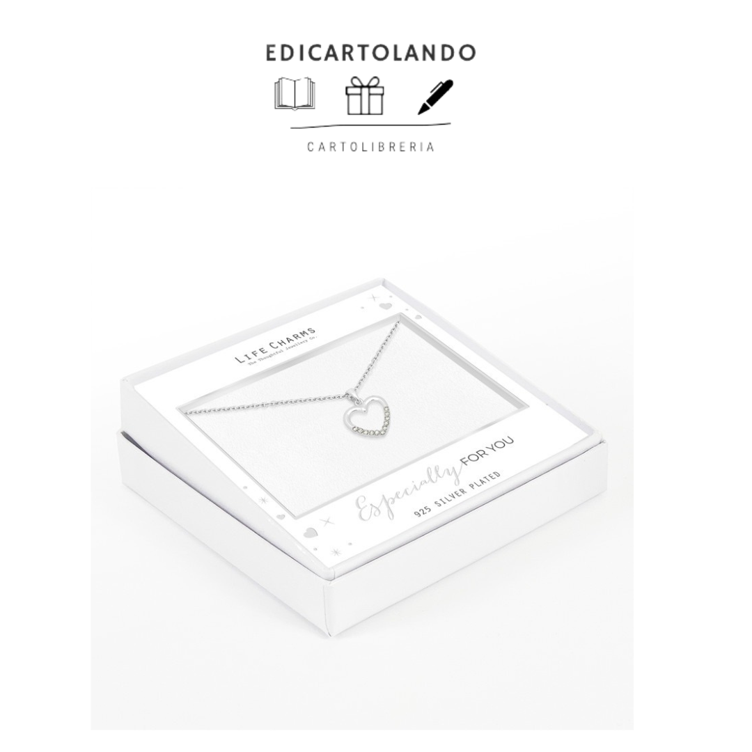 Collanina  regolabile con ciondolo aperto a forma di cuore realizzato in argento 925, tempestato di zirconcini  e con attenzione ai dettagli e al fascino estetico.