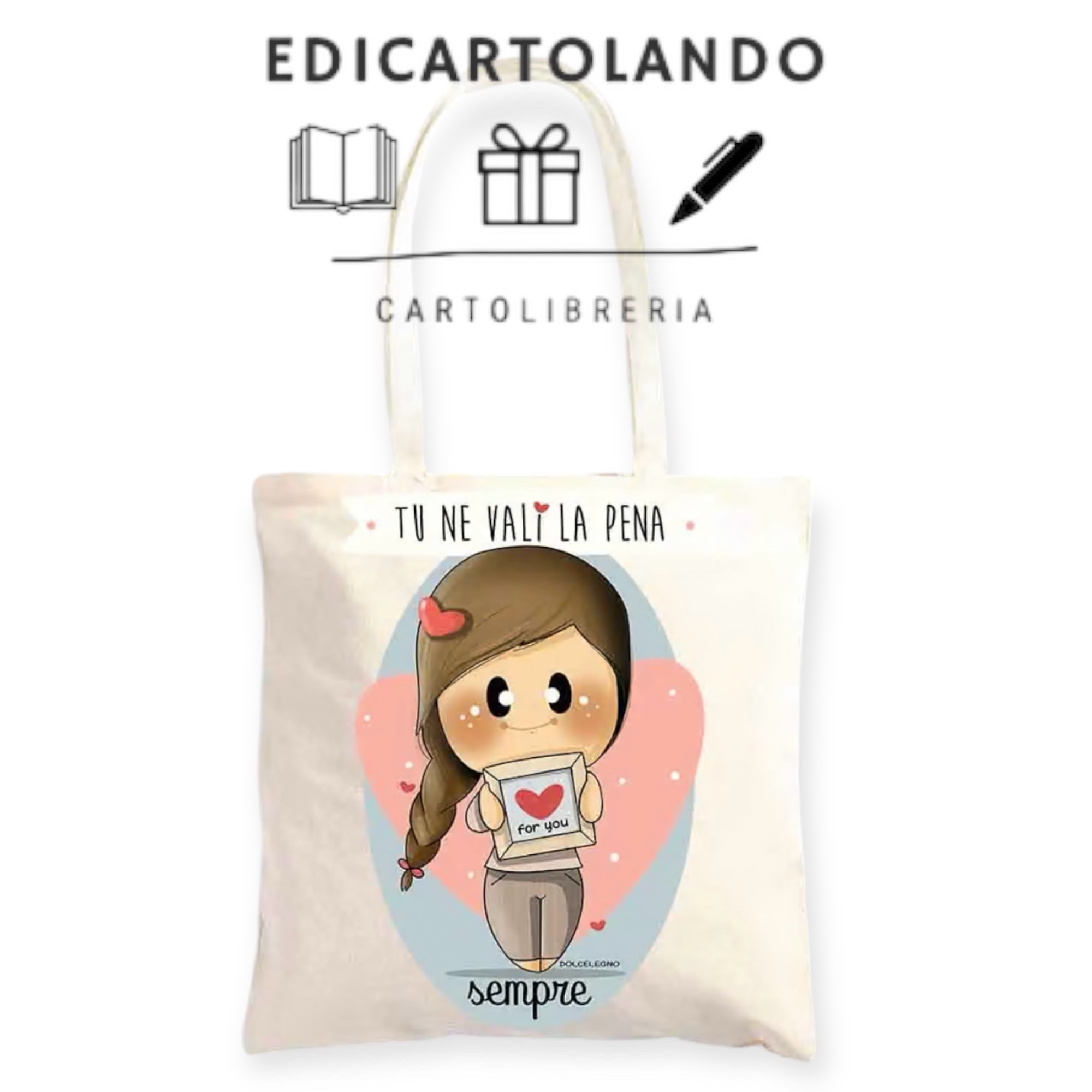 La borsa è confezionata in un simpatico sacchettino con un chiudi pacco gigante. Perfetta come idea regalo!!