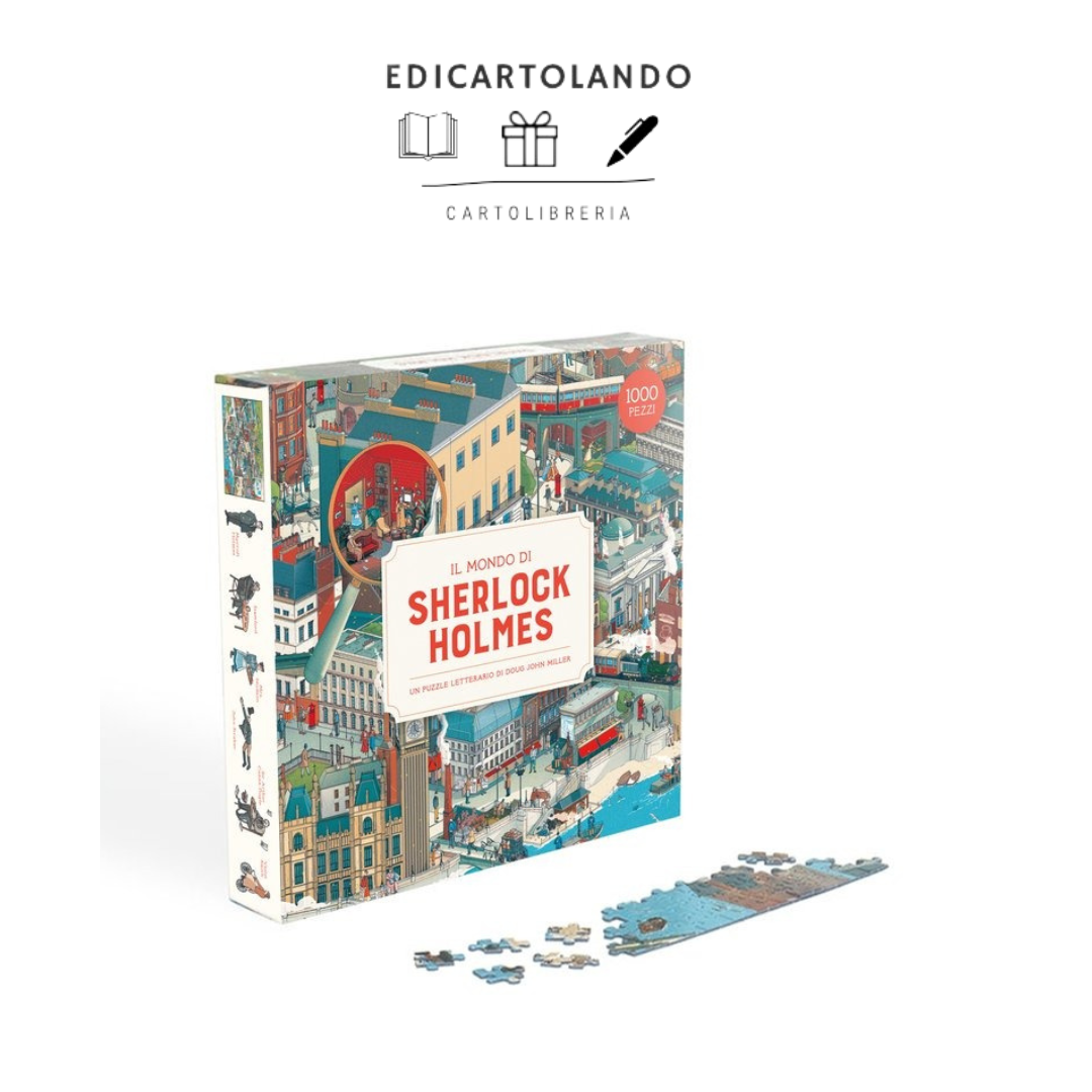 Ricostruite l’universo di Sherlock Holmes! Armati di pipa e cappello, partite dal mitico appartamento al numero 221B di Baker Street e tuffatevi nella Londra vittoriana, fra agghiaccianti scene del crimine e sfrenati inseguimenti sul Tamigi. Una volta assemblato il puzzle, scovate gli indimenticabili personaggi dei racconti di Conan Doyle, dal professor Moriarty al dottor Watson, dal mastino dei Baskerville a Mycroft, il misterioso fratello di Sherlock, senza disdegnare alcune figure storiche. Nella confezione è incluso anche un poster pieghevole che presenta 50 personaggi e location tratti dalle avventure del grande detective. Dimensioni del puzzle completo: 68 x 48,5 cm