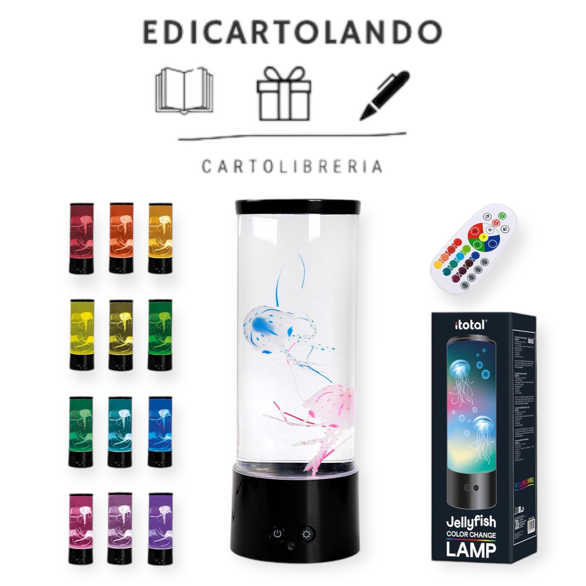 La lampada acquario con medusa di iTotal è formata da un corpo in vetro trasparente con all’interno delle finte meduse in plastica che galleggiano nell’acqua.