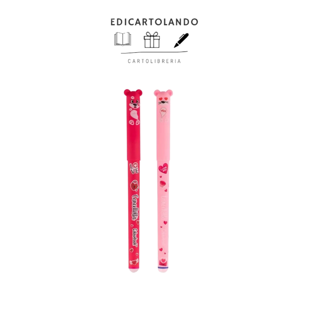 Le penne cancellabili Colourbook In Love sono decorate con Betty & Ben, una coppia di simpatiche lontre innamorate create per la linea Colourbook, simbolo di dolcezza, complicità e creatività.
