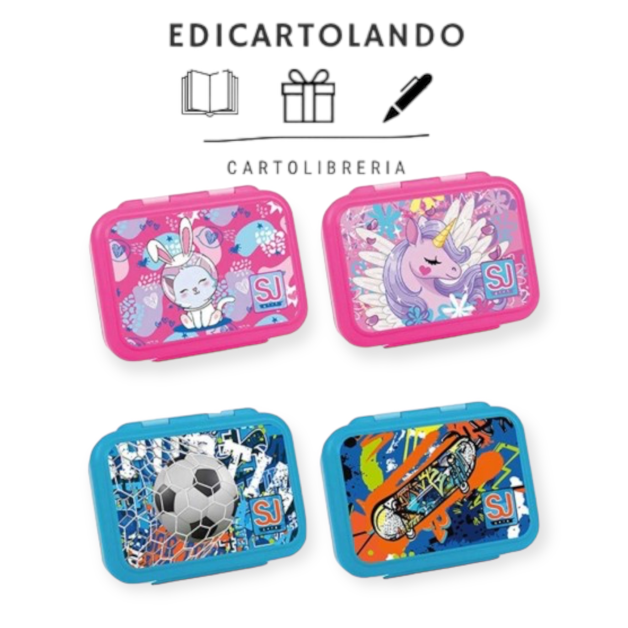 Contenitore porta merenda realizzato in bioplastica e acciaio inox adatto per il contatto con gli alimenti.