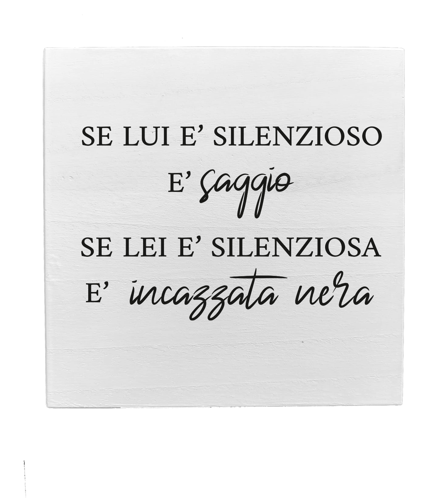 Recensisci per primo “Quadretto in Legno – Se lui è silenzioso è saggio se lei è silenziosa è incazzata nera”