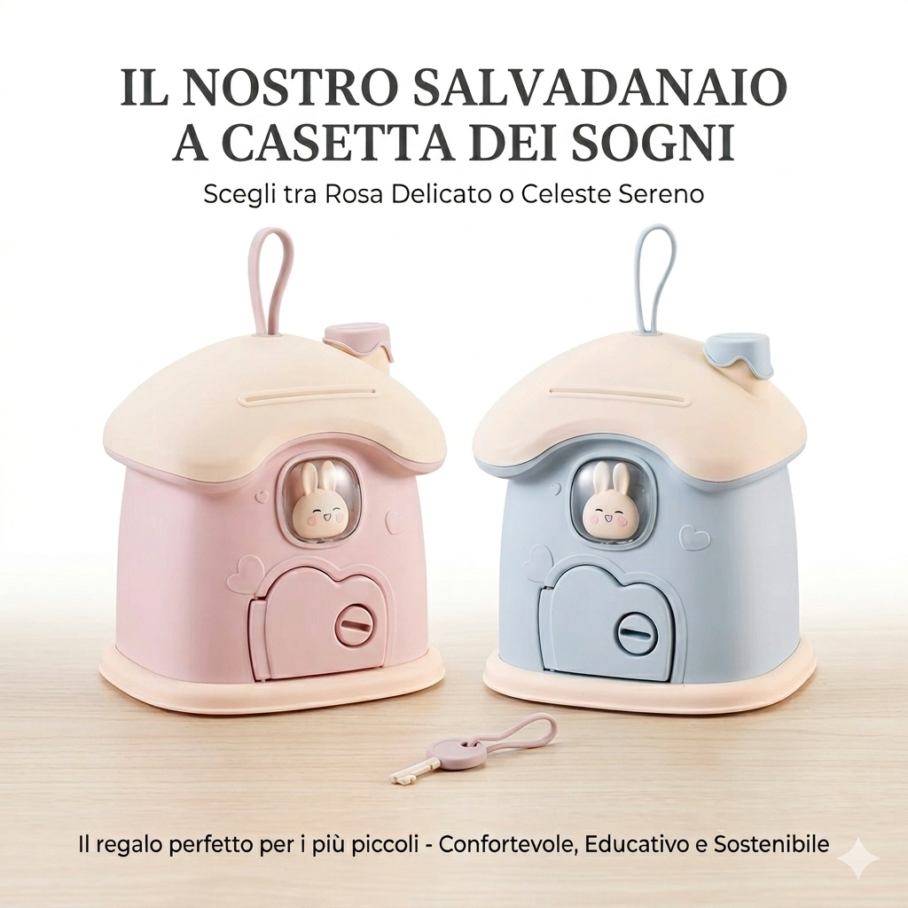 Il Salvadanaio Bunny House Incanta è un’ottima idea regalo per compleanni, feste o occasioni speciali. Oltre a essere un accessorio decorativo per la cameretta, aiuta i bambini a sviluppare una prima familiarità con il risparmio, stimolando anche coordinazione e manualità.