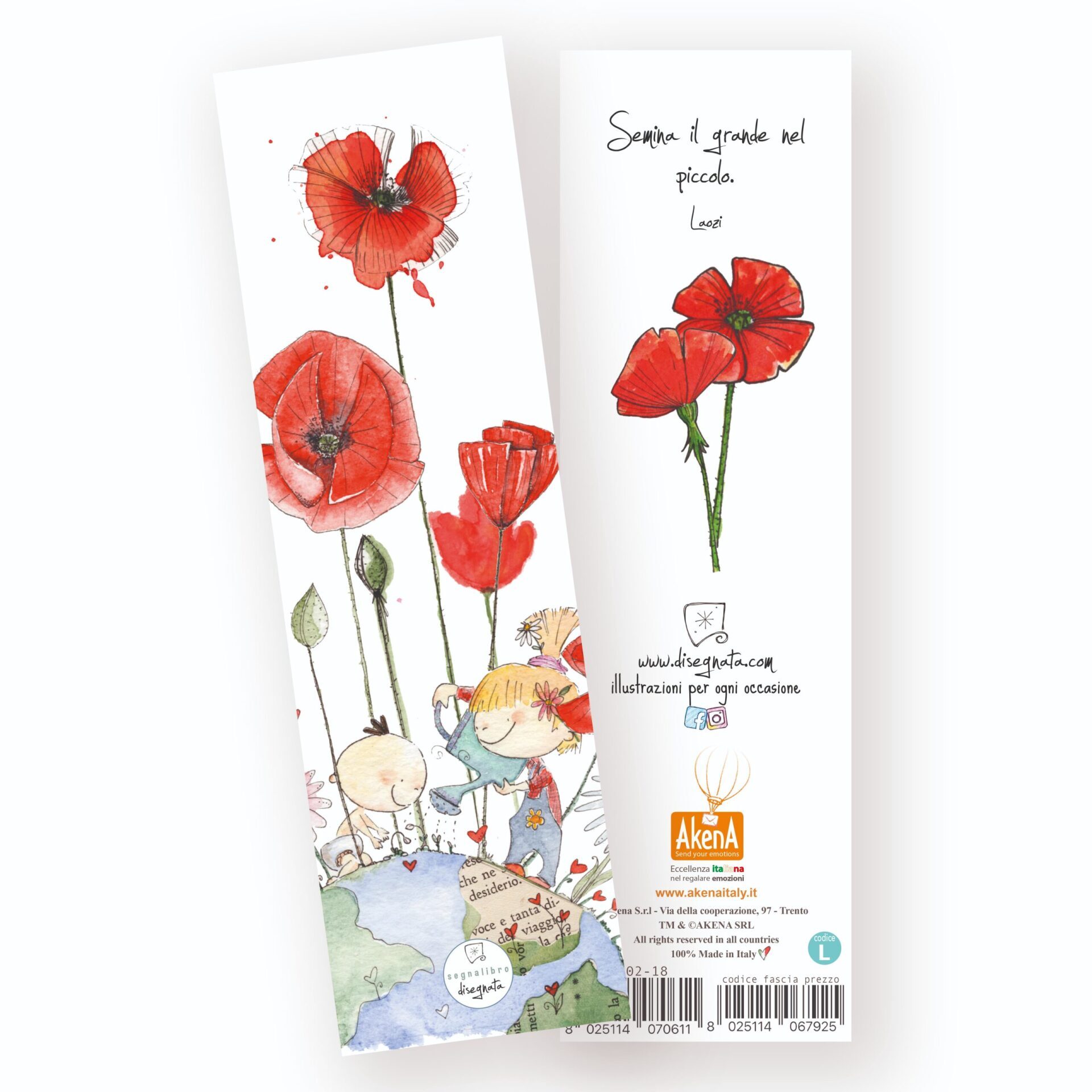 Segnalibro con stampa fronte-retro, illustrato ad acquarello con citazione