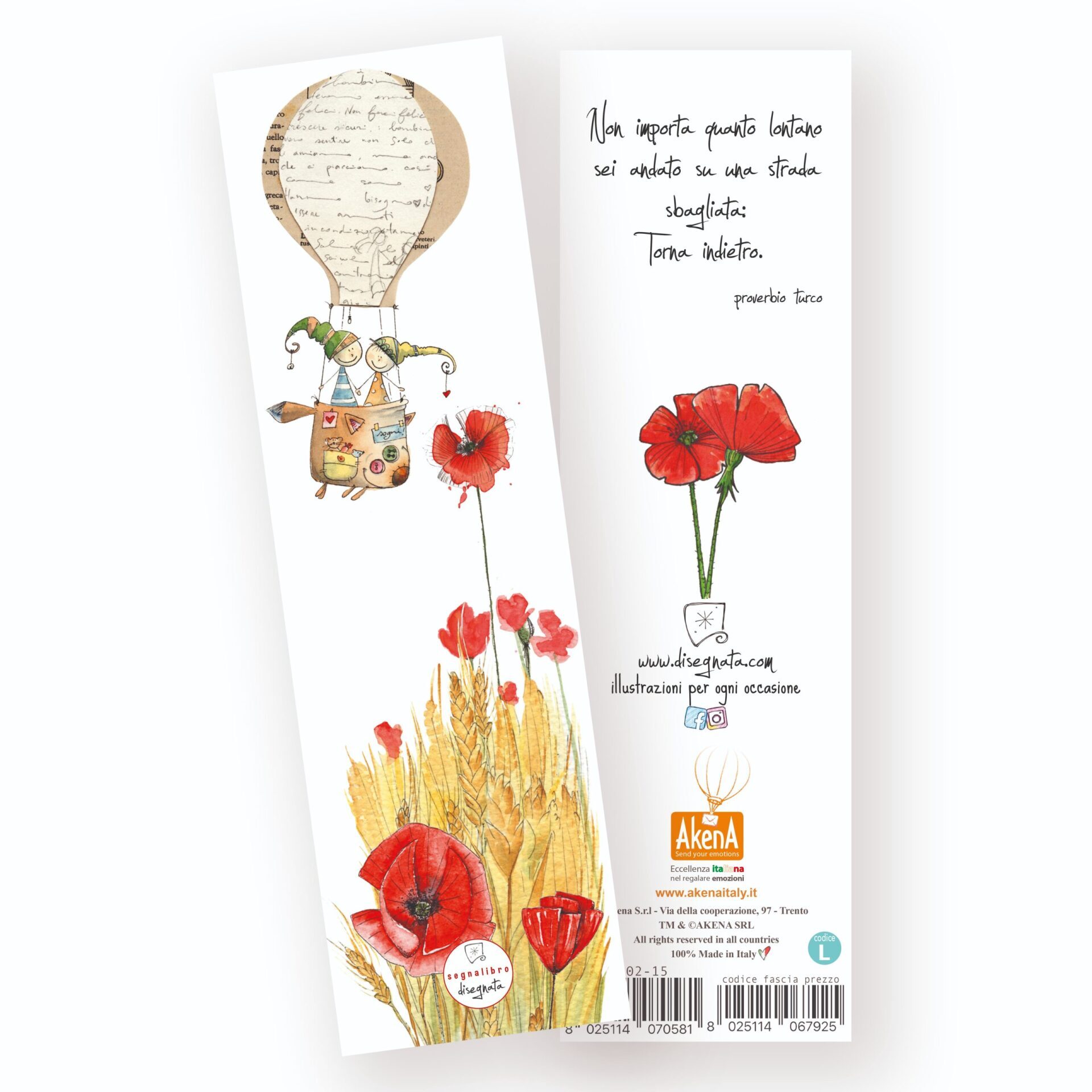 Segnalibro con stampa fronte-retro, illustrato ad acquarello con citazione