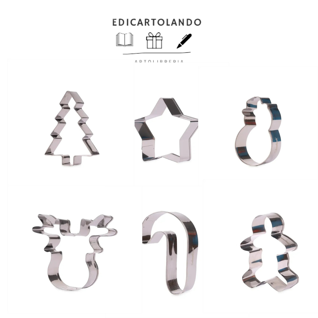 Il set include 6 formine assortite ispirate ai simboli più amati delle feste: Albero di Natale, Pupazzo di Neve, Renna, Stella, Omino di Pan di Zenzero e Caramella. Ogni sagoma è progettata per creare dolci perfetti da regalare, appendere all’albero, usare come segnaposto o preparare insieme ai bambini.