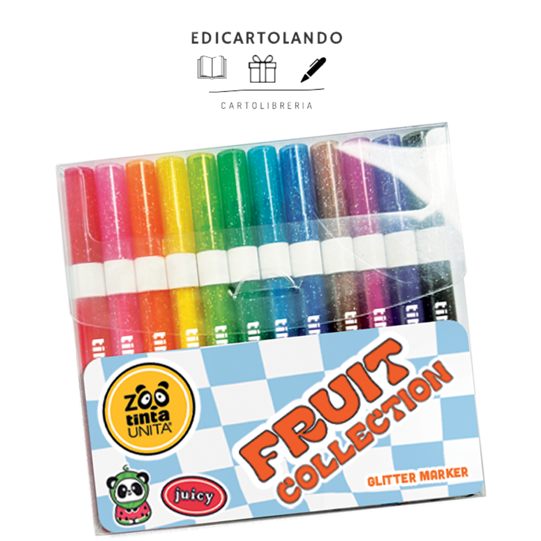 Set di 12 pennarelli con colori glitter ✨ e super profumati 🍓🍋🍑. Studiare, prendere appunti e creare non è mai stato così irresistibile come coi marker TintaUNITA Zoo Fruit Collection