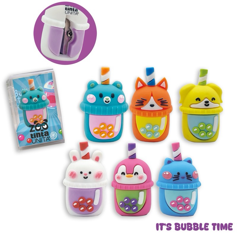 Compatto e pratico, è dotato di un foro singolo ideale per matite standard. Il design tridimensionale e le grafiche colorate della linea tintaUNITA Zoo Bubble Tea lo rendono perfetto per aggiungere un tocco di dolcezza alla cancelleria quotidiana.