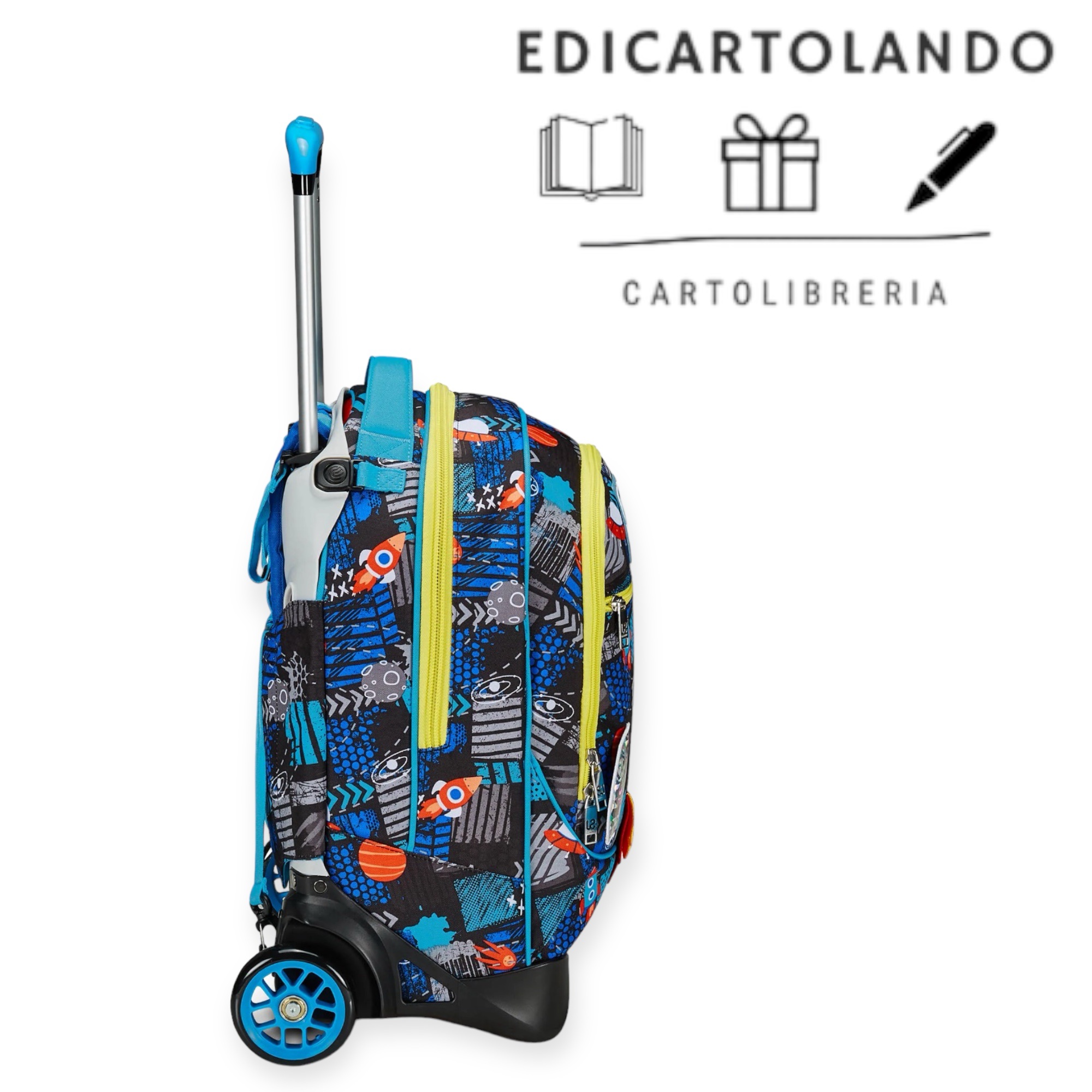 Lo zaino è capiente, da riempire con quello che ti serve: libri, quaderni per scuola, o il cambio per l’allenamento. Schienale e spallacci imbottiti inoltre rendono lo zaino comodo da indossare sulle spalle, mentre se lo agganci al carrello dotato di doppia barra telescopica, protezioni angolari e fondo rinforzato è maneggevole, stabile, pratico e sicuro da trascinare come trolley.